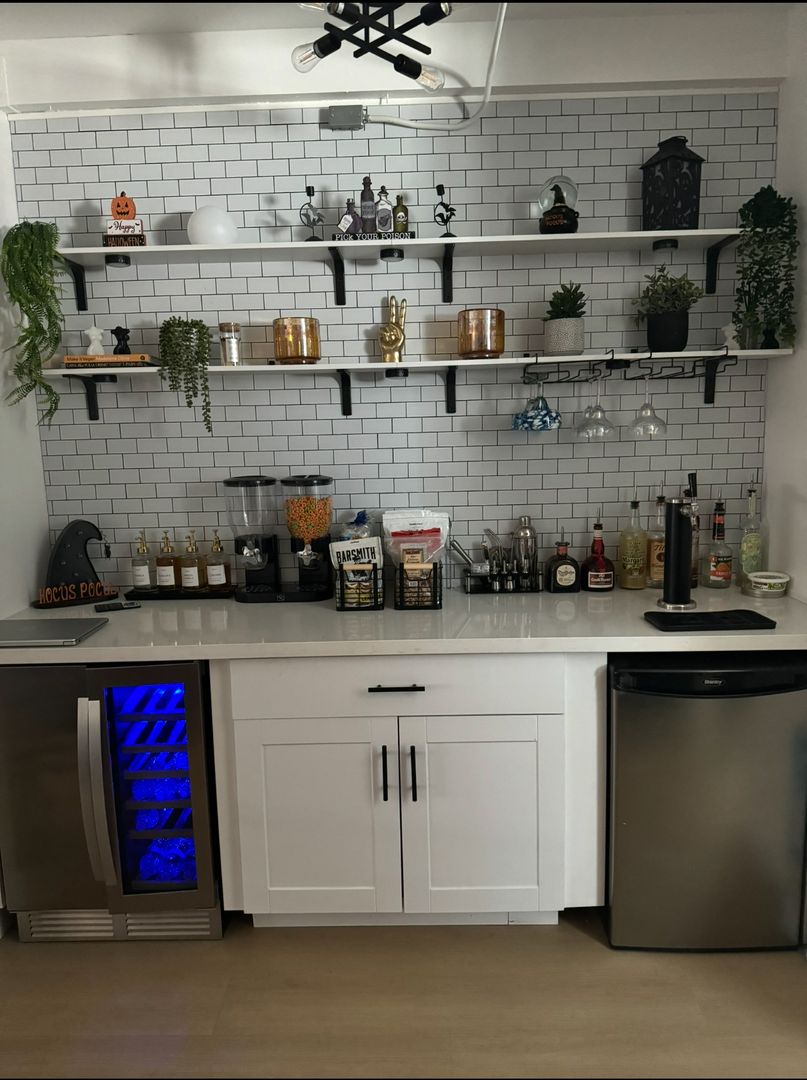 -Built in bar with wine cooler and kegerator